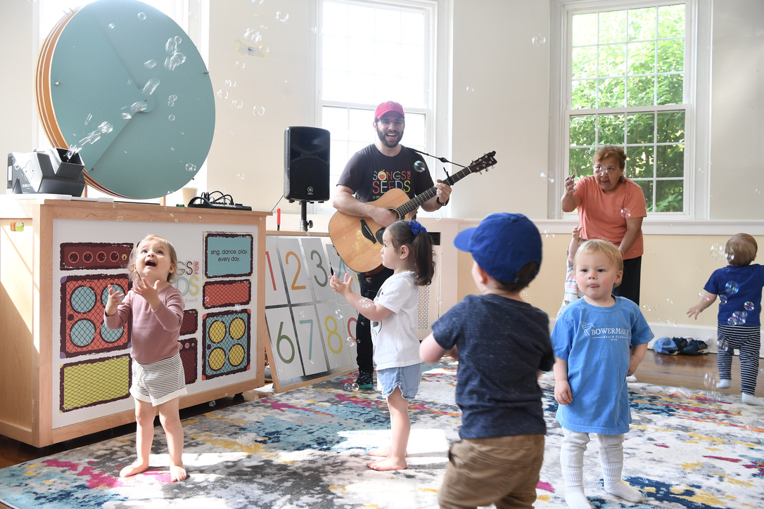 Join us for an interactive Songs for Seeds class that encourages children, newborn to 5 years old, to sing, dance and play along with their grown up AND very own rockstar teacher. Kids rock out with children's instruments, as well as a real guitar and instruments from around the world. Our teacher/musicians take students on a musical journey each week through a series of engaging activities. Your kids will experience music and language from cultures around the globe, help create magnetic art murals during a sing-along of well-known nursery rhymes, be amazed and delighted by magic tricks that are used to practice numbers and counting and get fully engaged in a silly game that reinforces the names and sounds of animals. By mixing our original kids rock 'n' roll with popular tunes, the band is sure to please little ones and their adults. Join the fun!