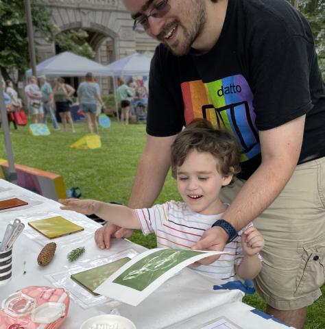The Center for Contemporary Printmaking will guide participants in creating unique artworks using Gelli Plate Printmaking. Gelli Plates are flexible slabs that are durable and reusable. They allow for the easy and quick creation of monotype prints without a press. Using stencils, texture tools, line drawing, stamps, and flat items such as leaves and lace, anyone can create unique colorful artwork on paper.