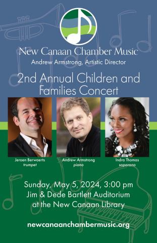 New Canaan Chamber Music's Andrew Armstrong, who grew up in New Canaan, is returning for the second annual Children and Families Concert on May 5th at 3:00PM in the Jim & Dede Bartlett Auditorium at the New Canaan Library. The one hour concert is for ages 4 through high school, accompanied by an adult. In addition to Andy, who is a concert pianist, Belgian trumpeter Jeroen Berwaerts who charmed the audience last year is returning. They will be joined by opera singer Indra Thomas who has wonderful experience working with children. Tickets are $25 for adults and free for children. Children must be accompanied by an adult with a paid ticket. To purchase tickets and register the children, please go to www.newcanaanchambermusic.org.