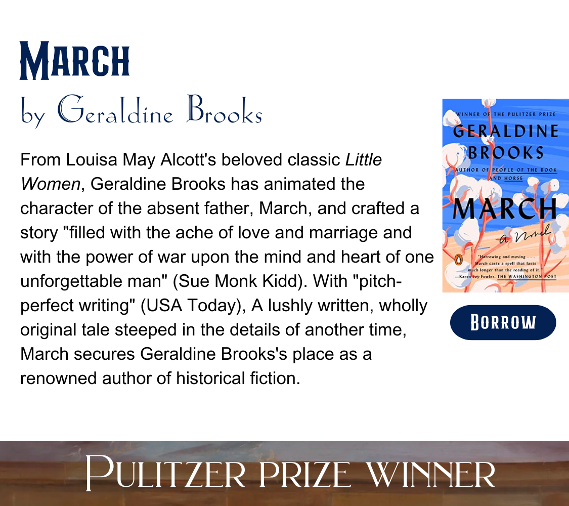 Geraldine Brooks is the author of the Pulitzer Prize–winning novel March and the international bestsellers Caleb’s Crossing, People of the Book, and Year of Wonders. She has also written the acclaimed nonfiction works Nine Parts of Desire and Foreign Correspondence. Born and raised in Australia, Brooks lives in Massachusetts.