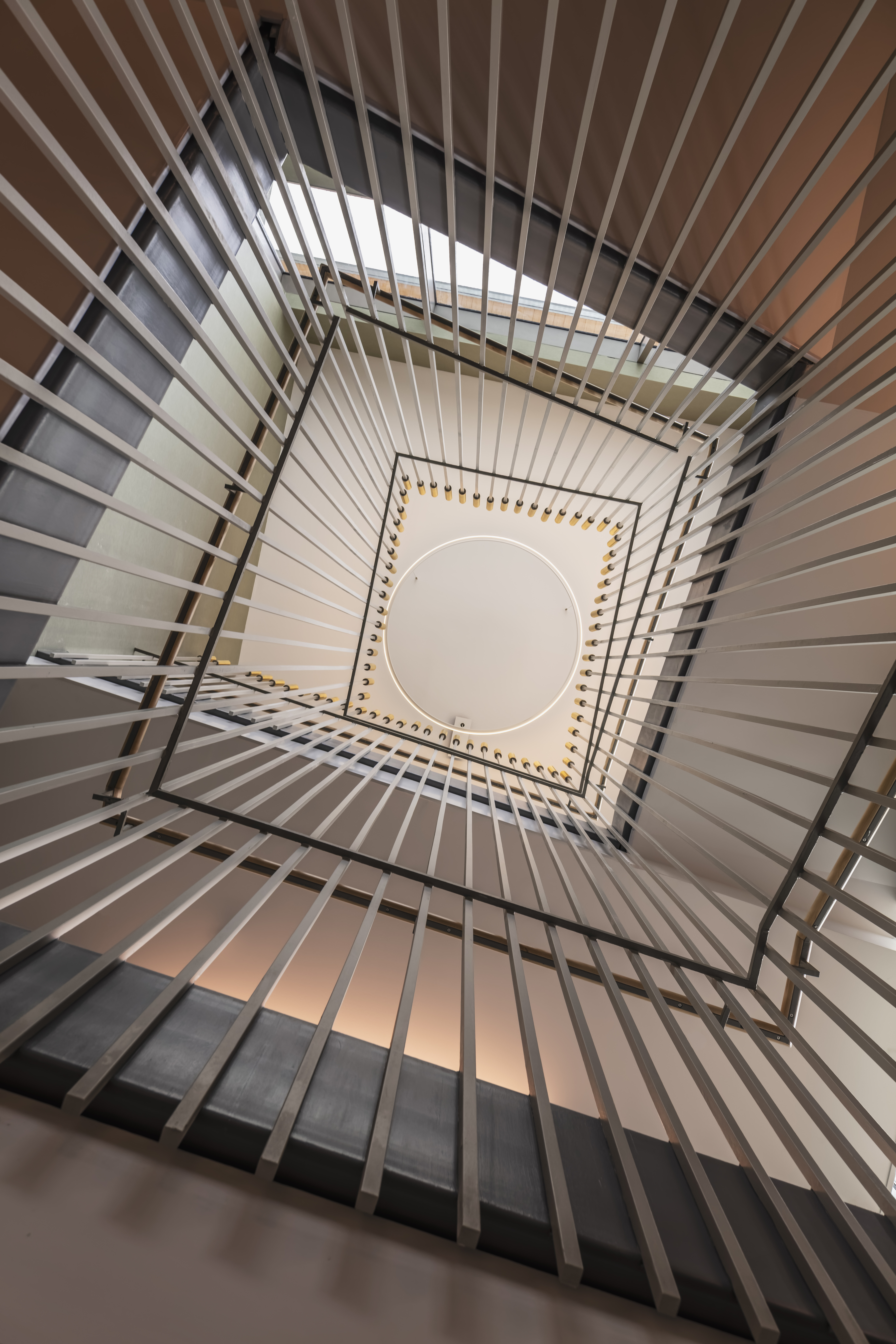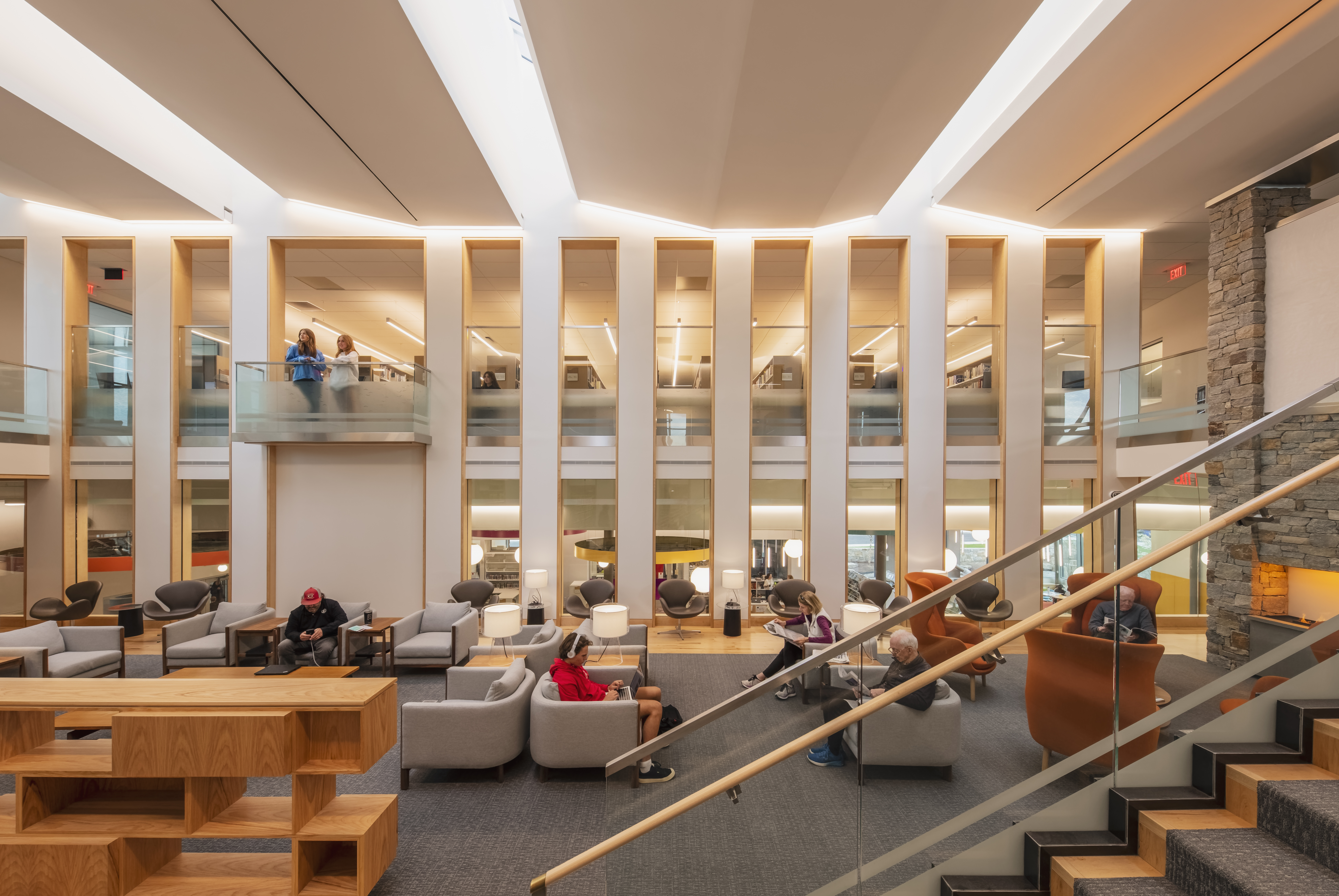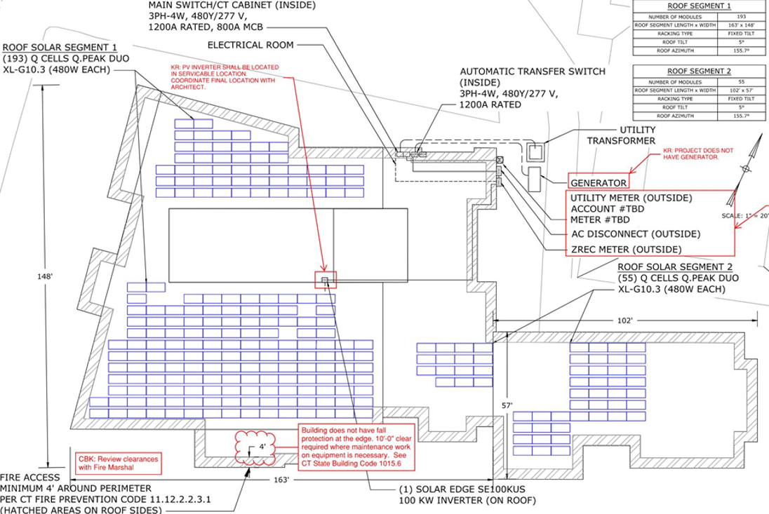 Hidden between the skylights above the Living Room is a row of electric heat pumps that use the gas expansion-compression cycle to generate heated and cooled refrigerant, which is sent as needed to each building zone. Fresh air is supplied through a system that recovers heat and humidity for maximum energy efficiency.