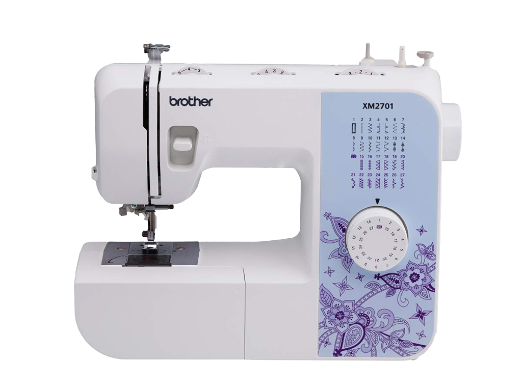 Brother Sewing Machine with 27 built-in stitches, including decorative, blind hem, zigzag, and stretch stitches and an auto-size buttonhole